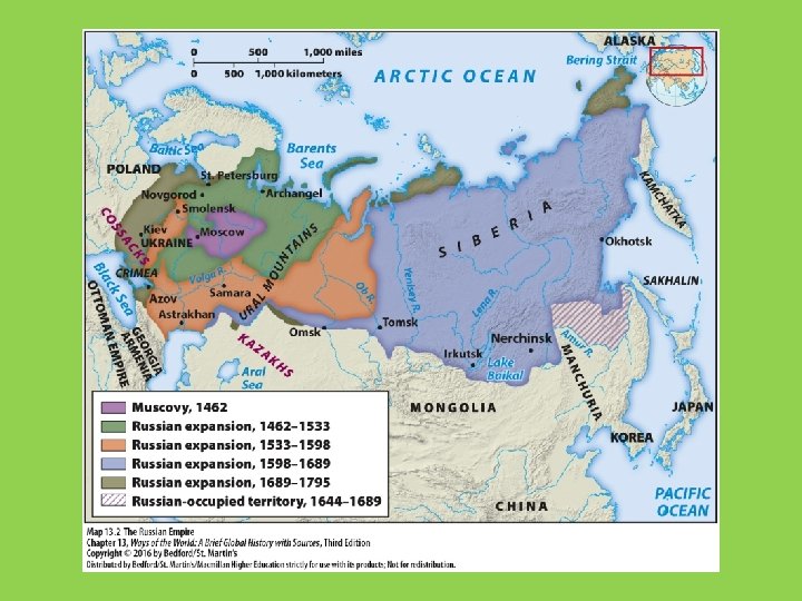 III. The Steppes and Siberia: The Making of a Russian Empire B. Russians and Empire 1. Imperial expansion 2. Rich agricultural lands, furs, minerals 3. Long-term Russian identity problem 4. Colonization experience different from the Americas
