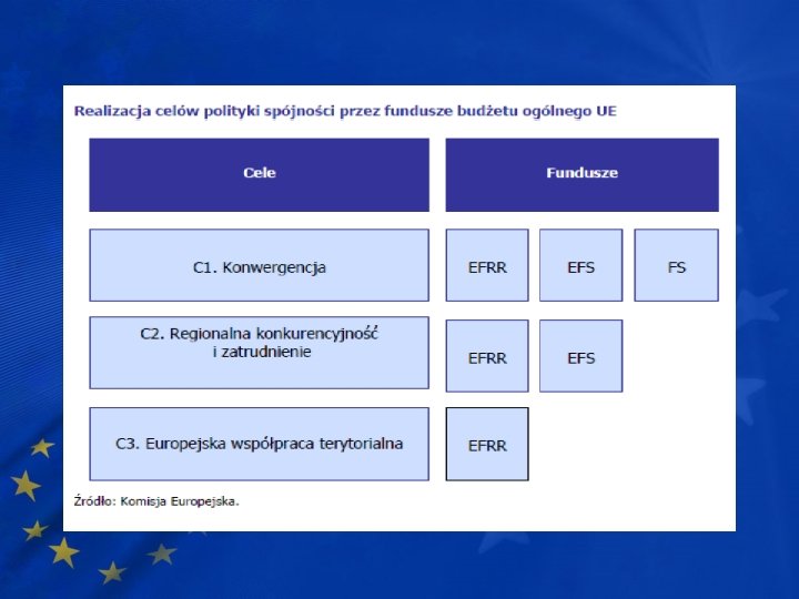 Instrumenty polityki spójności • Europejski Fundusz Rozwoju Regionalnego • Europejski Fundusz Społeczny • Fundusz Spójności