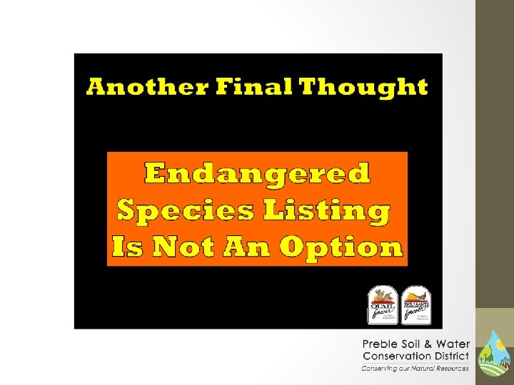 Contact Information Anna Smith Preble SWCD Outreach Coordinator (937)456 -5159 annasmith@prebleswcd. org Renee Buck Pheasants Forever Farm Bill Biologist (937)578 -8264 rbuck@pheasantsforever. org