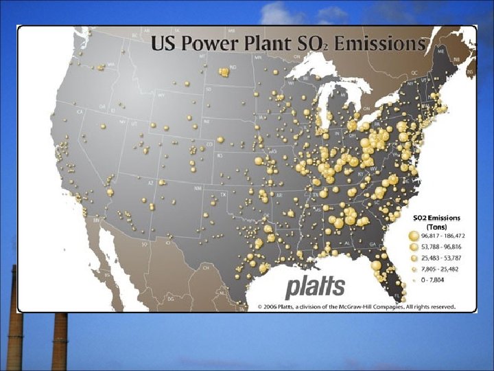 Pollution Types • Chemical (air, water, soil) • Noise • Light Definition: The contamination of air, water, or soil by substances that are harmful to living organisms. Effects of SO 2 and NO 2: Lung Damage Heart attacks Acid Rain formation Smog formation Ground ozone formation Note: Air pollution comes from natural and anthropogenic sources