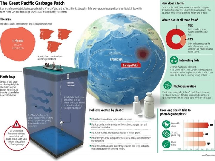 Solid Waste • Non-biodegradable Plastic – 400 year molecular decomposition – 46, 000 pieces of floating plastic/mile 2 of ocean surface off the northeastern U. S. coast – Kill 100, 000 marine mammals & 2 million sea birds annually • Sea Turtles – Plastic bags look like jelly fish – Cause internal blockages • Sea Lions & Seals – Entangled by nets & muzzled by 6 -pack rings – Starve to death
