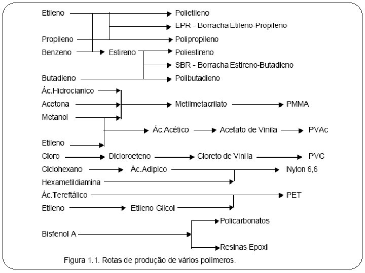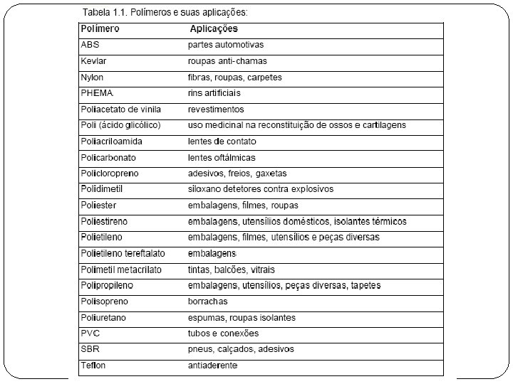 CONCEITO Existe no mercado uma grande quantidade de tipos de polímeros, derivados de diferentes compostos químicos. Cada polímero é mais indicado para uma ou mais aplicações dependendo de suas propriedades físicas, mecânicas, elétricas, óticas etc. Os tipos de polímeros mais consumidos atualmente são os polietilenos, polipropilenos, poliestirenos, poliesters e poliuretanos. Outras classes de polímeros, como os poliacrilatos, policarbonatos e fluorpolímeros tem tido uso
