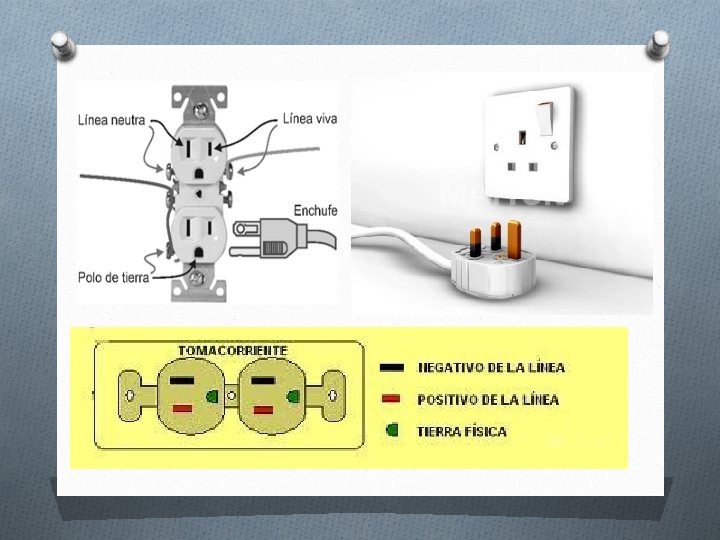 O Normalmente es una varilla enterrada en la tierra y se amarra a un cable de cobre la cual funciona creando una vía directa a tierra para todo voltaje que entre en contacto con ella. O Generalmente los tomacorrientes actuales tienen un tercer orificio y ese es que provee una pequeña seguridad en caso de un corto circuito.