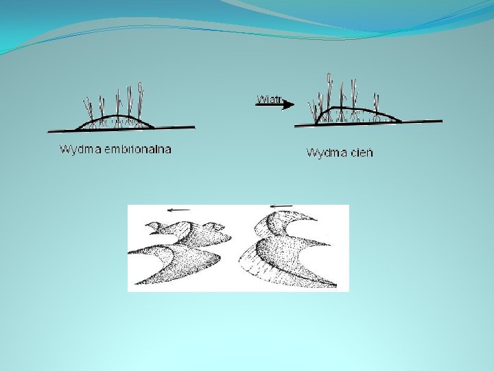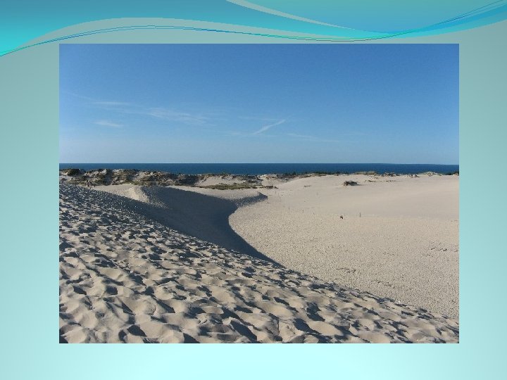 KRAJOBRAZ WYDMOWY • Środowisko suche, fragmentarycznie halofilne, • Działalność wiatru, • Formacje traw z klasy Ammophiletea (psammofity), lub formacje lasu z klasy Vaccinio – Piceetea (bory sosnowe suche), • Słowiński Park Narodowy (wydmy ruchome = wędrowne)
