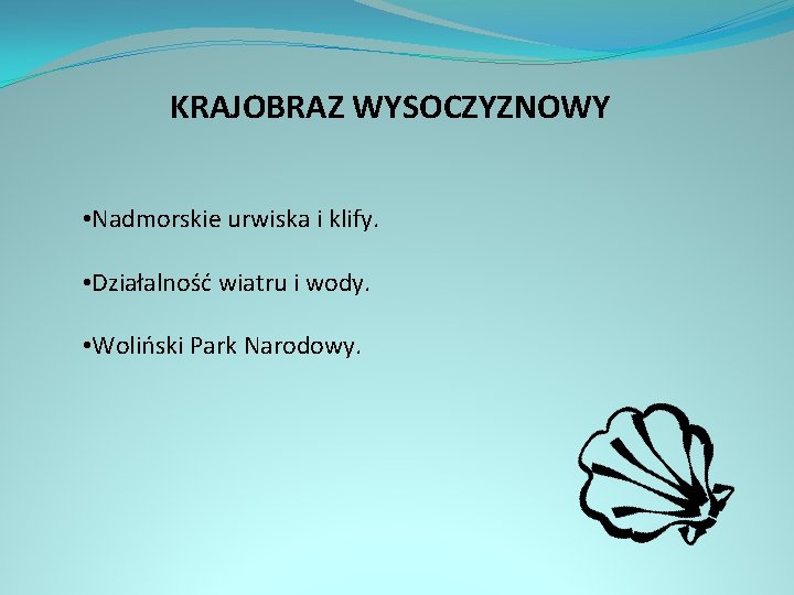 KRAJOBRAZ WYSOCZYZNOWY • Nadmorskie urwiska i klify. • Działalność wiatru i wody. • Woliński Park Narodowy.