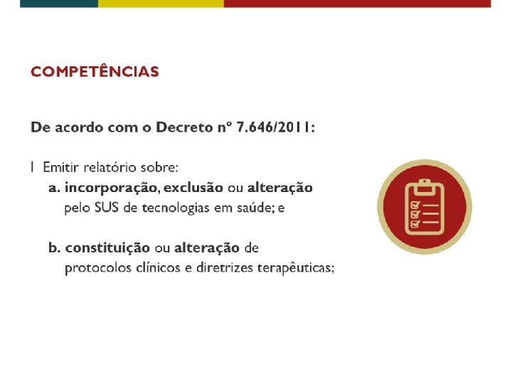 PCDT Recomendar tecnologias com maior benefício e menor dano à saúde Maior eficiência na alocação de recursos Auxiliar as decisões dos profissionais de saúde Padronização de condutas clínicas Melhorar a qualidade e segurança do serviço de saúde