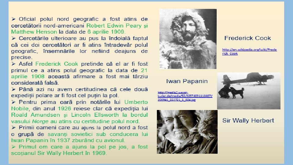 Ø La Polul Nord gheaţa este de aproximativ de 2 -3 metri grosime. Ø Adâncimea oceanului de la Polul Nord este de mai mult de 4 kilometri. Ø Aproape de pol este şi cea mai mare insulă din lume, Groenlanda, o ţară independentă în cadrul Regatului Danemarcei. Ø Teritoriul canadian Nunavut se află cel mai aproape de Polul Nord. Ø De asemenea, aproape de pol este şi cea mai mare insulă din lume, Groenlanda, o ţară independentă în cadrul Regatului Danemarcei. Ø Insula Kaffeklubben, o mică insulă din nordul extrem al Groenlandei, este considerată ca partea de uscat care se află cel mai aproape de Polul Nord geografic, este la o distanţă de 707 kilometri.