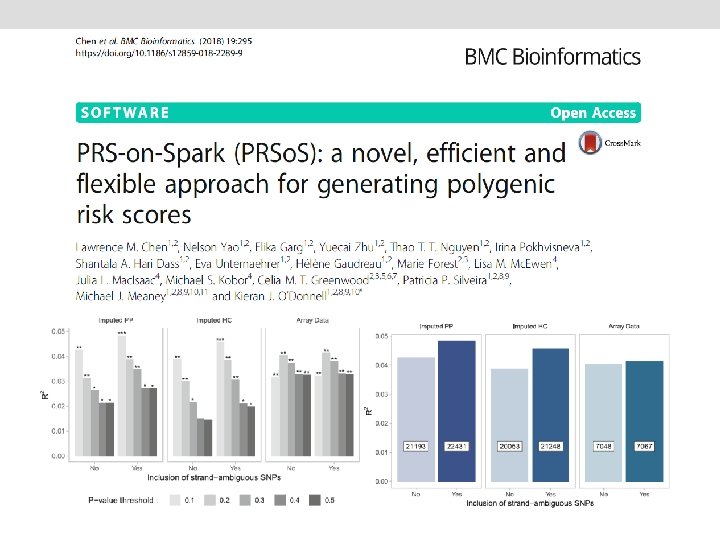 The classics • Wray NR, Goddard, ME, Visscher PM. Prediction of individual genetic risk to disease from genome-wide association studies. Genome Research. 2007; 7(10): 1520 -28. • Evans DM, Visscher PM. , Wray NR. Harnessing the information contained within genome-wide association studies to improve individual prediction of complex disease risk. Human Molecular Genetics. 2009; 18(18): 3525 -3531. • International Schizophrenia Consortium, Purcell SM, Wray NR, Stone JL, Visscher PM, O'Donovan MC, Sullivan PF, Sklar P. Common polygenic variation contributes to risk of schizophrenia and bipolar disorder. Nature. 2009; 460(7256): 748 -52 • Evans DM, Brion MJ, Paternoster L, Kemp JP, Mc. Mahon G, Munafò M, Whitfield JB, Medland SE, Montgomery GW; GIANT Consortium; CRP Consortium; TAG Consortium, Timpson NJ, St Pourcain B, Lawlor DA, Martin NG, Dehghan A, Hirschhorn J, Smith GD. Mining the human phenome using allelic scores that index biological intermediates. PLo. S Genet. 2013, 9(10): e 1003919.