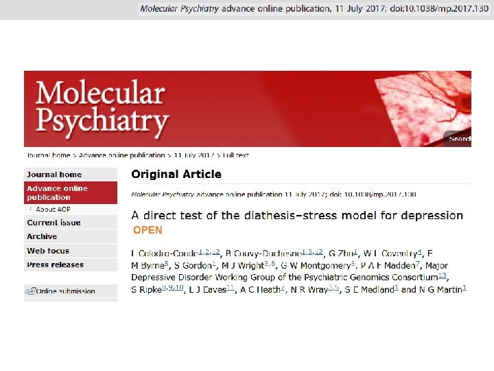 Traditional approach Wray et al (2014) J Child Psychol Psychiatry