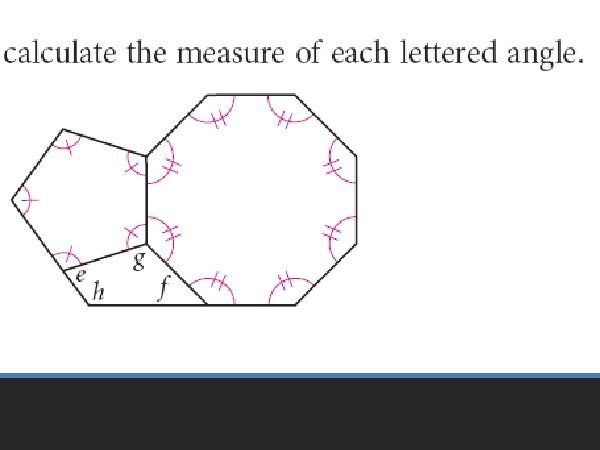 • What are the angle measures if the polygon is regular • (n-2) • 180°/n Interior Angles in a Polygon