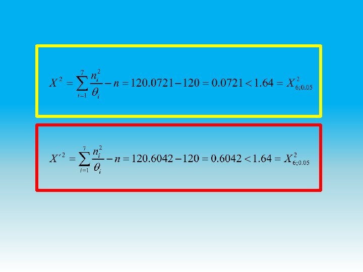 x ni φ(x) θi ni 2/θi f(x) θi΄ ni 2/θi΄ [0, 75) 8 0. 0495 5. 9 10. 8474 0. 0697 8. 4 7. 6190 [75, 150) 15 0. 1387 16. 6 13. 5542 0. 1377 16. 5 13. 6364 [150, 225) 24 0. 2005 24. 0000 0. 1852 22. 2 25. 9459 [225, 300) 26 0. 2226 26. 7 25. 3184 0. 2148 25. 8 26. 2016 [300, 375) 23 0. 2005 24. 1 21. 9502 0. 1852 22. 2 25. 9459 [375, 450) 15 0. 1387 16. 6 13. 5545 0. 1377 16. 5 13. 6364 [450, 525] 9 0. 0495 5. 9 10. 8474 0. 0697 8. 4 7. 6190