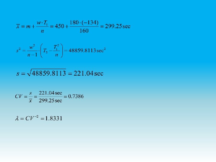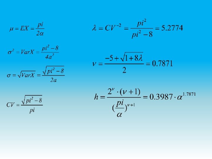μ σ2 σ CV λ ν h 263. 75 15124. 4748 122. 98 0. 4663 4. 5991 0. 5738 0. 000123 The polynomial pdf is: and the corresponding cdf is: