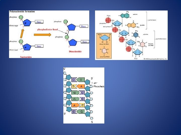 • The successive nucleotides of both DNA and RNA are covalently linked through phosphate-group “bridges, ” in which the 5 -phosphate group of one nucleotide unit is joined to the 3 -hydroxyl group of the next nucleotide, creating a phosphodiester linkage • the covalent backbones of nucleic acids consist of alternating phosphate and pentose residues, and the nitrogenous bases • may be regarded as side groups joined • to the backbone at regular intervals. • The backbones of • both DNA and RNA are hydrophilic. • The hydroxyl groups of the sugar residues • form hydrogen bonds with • water. The phosphate groups, with a • p. Ka near 0, are completely ionized and negatively • charged at p. H 7, and the negative charges are • generally neutralized by ionic interactions with positive charges on • proteins, metal ions, and polyamines.