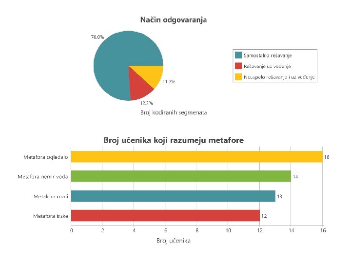 Način odgovaranja Rešavanje uz vođenje Neuspelo rešavanje uz vođenje Samostalno rešavanje „u bokovima svojim nosi nemir voda“ 6 3 8 „trska koja misli“ 0 5 12 „ogledala“ 4 1 12 „ogledala da ore“ 2 4 11
