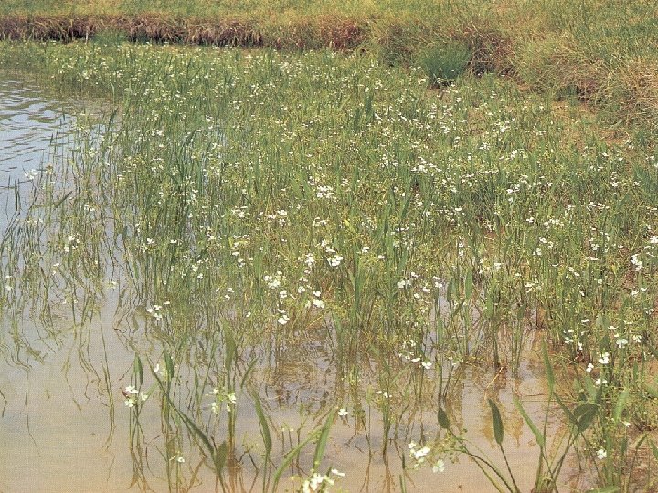 Submerged plants (grow mainly below surface and have very soft stems) • • • Pondweeds Elodea Watermilfoil Coontail Naiads Bladderwort