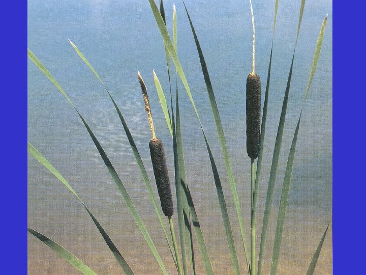 Emergent plants (rooted in water but most of foliage above water) • • • Arrowhead Cattail Water primrose