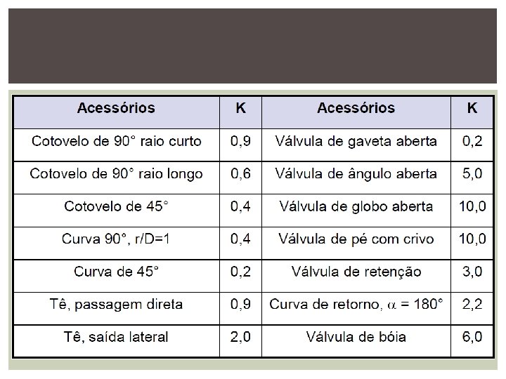 MÉTODO DO COMPRIMENTO EQUIVALENTE OU VIRTUAL Considera-se que as peças e conexões podem ser substituídas (no cálculo) por comprimentos virtuais de tubulação que resultem na mesma perda de carga. Ou seja, a conexão é substituída por um comprimento de tubo, de mesmo diâmetro, no qual a perda de carga linear é igual a perda de carga localizada