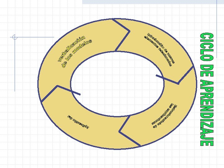 SECUENCIACIÓN DE UN APRENDIZAJE abstracto ESTRUCTURACIÓN DE LAS EXPLICACIONES (MODELOS CONSTRUÍDOS) Sistematización, estructuración y generalización de los nuevos modelos construidos. INTRODUCCIÓN DE NUEVOS ELEMENTOS, RELACIONES Y VARIABLES APLICACIÓN DEL ¿Hay otras formas de ver de pensar, de sentir, MODELO ELABORADO de actuar? . Ampliar el nivel de complejidad y ¿Cómo aplicar las nuevas formas de generalización inicial. de ver, de pensar, de sentir y de actuar? . VERBALIZACIÓN DE LOS Propuesta de acciones aplicables a la realidad cercana. MODELOS INICIALES ¿Qué sé, Qué pienso, ¿Qué siento? , ¿Qué hago? Arme una realidad concreta o un problema, reflexionar y explicar los propios puntos de partida. concreto simple complejo