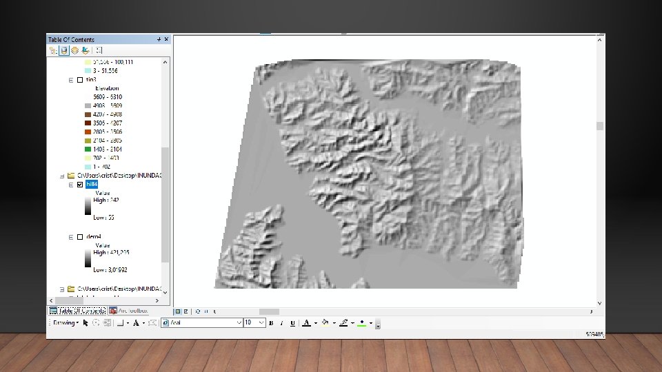 MAPA DE SOMBRAS (HILLSHADE) EJERCICIO: ARCTOOLBOX > 3 D ANALYST TOOLS > RASTER SURFACE > HILLSHADE