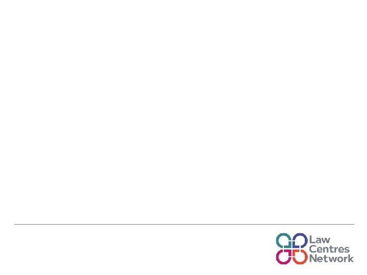 Potential Outcomes of Law Centre work 2018 • Cost per debt problem £ 2, 862 • Cost per homeless person 24, 000 -30, 000 • Cost of LA temporary accommodation/shelter 10, 974 • Cost of failed tenancy per case 29, 275 • Average annual lost employment costs 17, 458 • Average cost of unemployment benefits per case 13, 694 • Average annual cost of ill health (mental health) 2, 029 • Cost of stress and anxiety person 8, 963 • Cost of reconviction of ex-prisoners over 3 years 158, 310 • Employment - potential income tax generated pp 10, 870