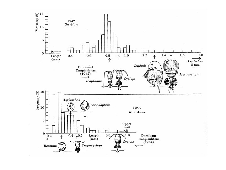 Selektivní role predace • Další podobné situace: - Vanni et al. (1990) v jezeře Mendota po úhynu planktonofágních ryb : v jezeře Mendota (Wisc. , USA) došlo koncem léta k masovému úhynu planktonožravého síha Coregonus artedii – pokles z 239 na 13 kg. ha-1, kromě zásadní změny zooplanktonu (viz obr. ) také výrazný pokles biomasy fytoplanktonu a zejména nízké zastoupení sinic, které jinak jsou hojné od června do podzimu