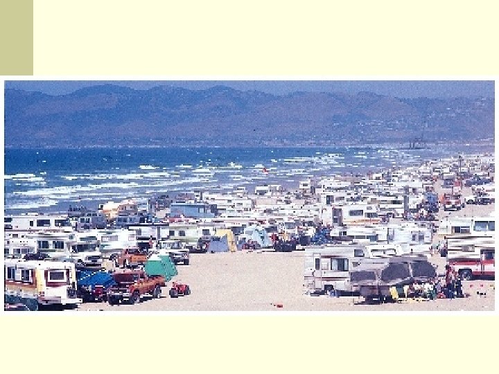 Impact on the Environment n Massive presence of people in recreational areas results in n n damage to physical environment National parks suffer from traffic jams, residential congestion, litter, and noise pollution Off road vehicles have caused soil loss and long term soil deterioration As few as several hundred hikers can beat down trails n Vegetation is altered n Erosion is encouraged n Wildlife diminished The more humans cluster in cities and suburbs, the greater their impact on open areas