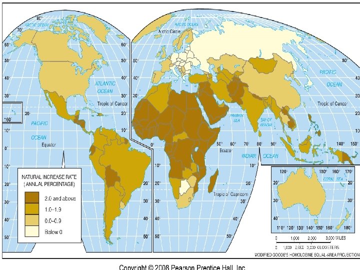 Natural Increase Three ways geographers measure pop. Change 1. Crude birth rate (CBR) – total # of live births in a year for every 1, 000 people alive in the society 2. Crude death rate (CDR) – total # of deaths in a year for every 1, 000 people alive in the society 3. Natural increase rate (NIR) – the % growth of a population in a year, computed as the crude birth rate minus the crude death rate