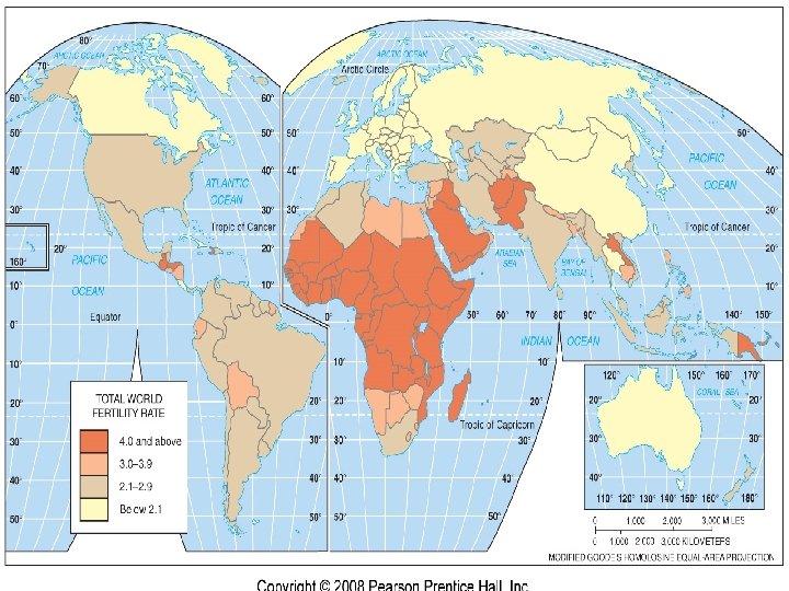 Fertility Total fertility rate (TFR) – the average number of children a woman will have throughout her childbearing years (15 -49) Attempts to predict the future behavior of individual women in a world of rapid cultural change TFR for world is 2. 7 Much higher in LDCs than MDCs Over 6 in some African countries