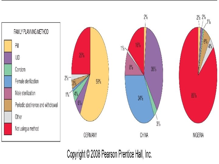 Distribution of Contraceptives In LDCs, demand for contraception is greater than the supply Which means if more are distributed, more will be used and birth rate will decline About ¼ of African women use contraceptives Economic, religious, and educational reasons for this