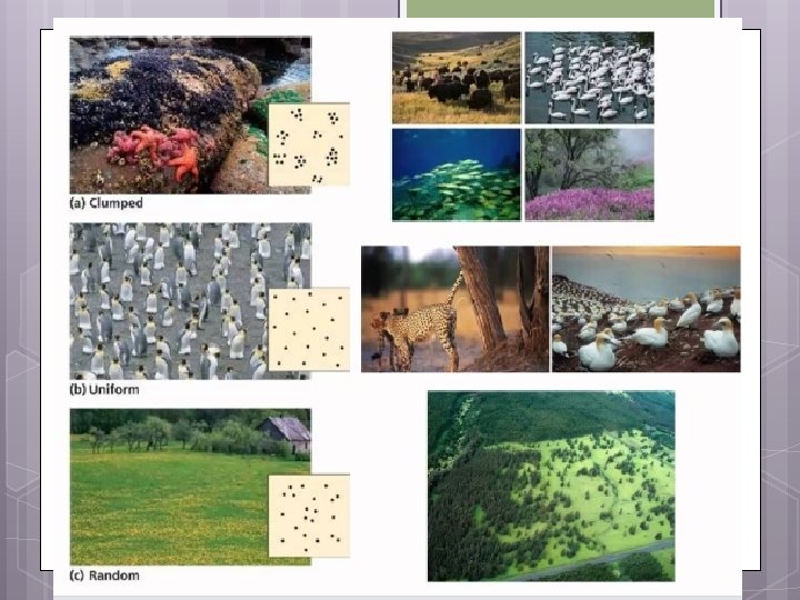 Population Dispersion Clumped Ø Ø dispersion Individuals live close together in groups This might help with: • • • Mating Protection Sharing of resources