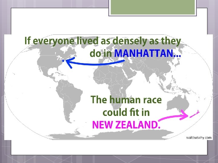 Population Density Population density is the number of individuals that live in a defined area!! Cities have more dense populations of people Rural areas have more widely spread out, or dispersed, populations Different populations have different population densities.
