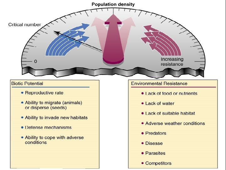 Environmental Resistance continued… • There is a dynamic balance between biotic potential and environmental resistance. • Carrying capacity (K) - maximum number of individuals a habitat can support over a given period of time due to environmental resistance (sustainability)