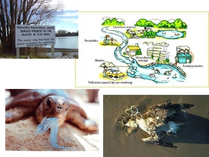 Water Pollution: – Nitrates (from fertilizer runoff), phosphates, oil, detergents, heavy metals (like mercury), plastic refuse – Pollutants can be concentrated in the food chain • Biomagnification