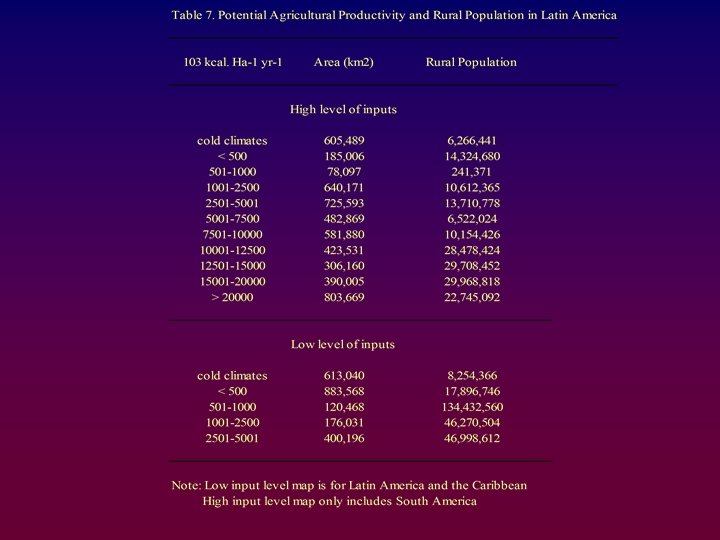 Distribution of Rural Population in Latin America and the Caribbean People per km 2 Central America, the Andes, and the Caribbean have the highest rural population densities. Source: CEPAL 0 -1 1 -10 10 -20 20 -30 30 -40 40 -50 50 -60 60 -70 70 -80 80 -90 90 -100 >100 No Data