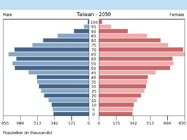 Population Pyramids A pyramid-shaped graph illustrating the age distribution of a population: the youngest are represented by a rectangle at the base, the oldest by one at the top