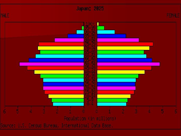 Stage 4 – Low Stationary n Birth Rate: Falling more slowly n Death Rate: Slight fall n Natural Increase: Very slow increase n Example: USA, Japan, France, UK