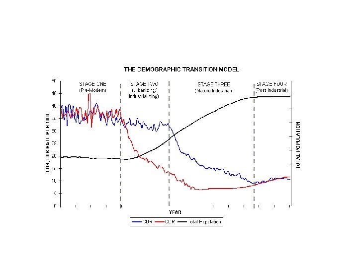 Definition • …low birth rates and low death rates as part of the economic development of a country. • TRANSITION= from a pre-industrial to an industrialized economy