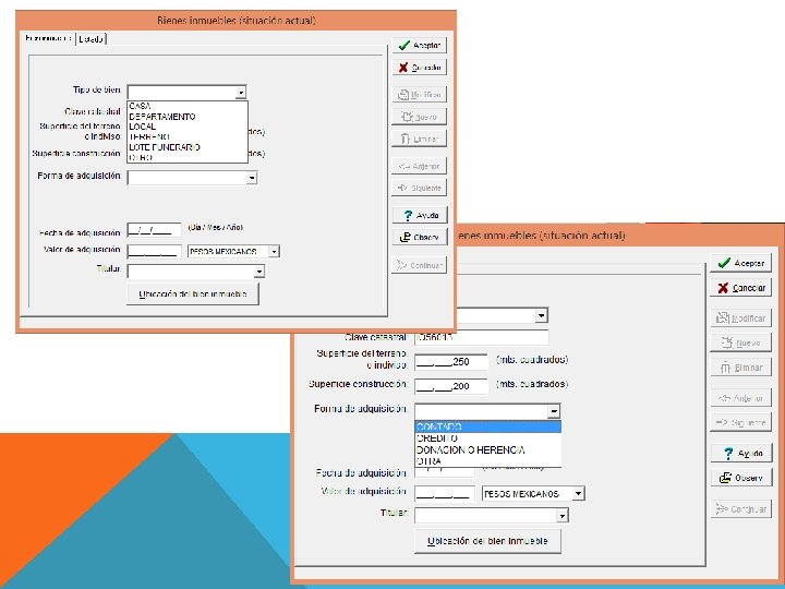 Realizado el llenado de la información referente a los bienes inmuebles se oprime el botón de ACEPTAR y de nuevo en la ventana de aviso.