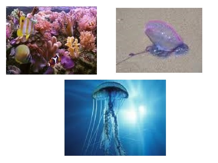 Classificação Os cnidários dividem-se em três classes: • Hidrozoa: hidras, caravelas, etc. Pequeno porte, vivem isoladamente ou formam colônias. • Scyphozoa: águas-vivas. Podem viver isoladas ou em grupos. • Antozoa: anêmonas-do-mar e corais. Vivem fixos.