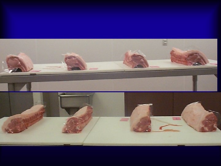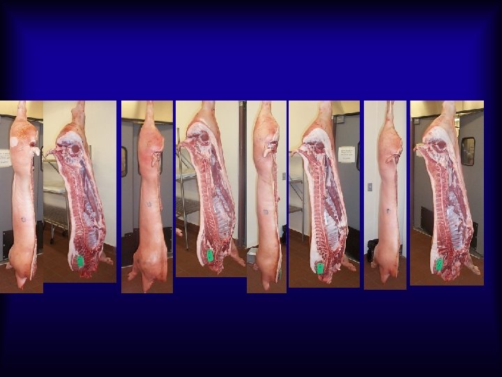 Pork Carcasses • • Normally evaluated skin-on and unribbed Evaluated for differences in fatness, muscling, and indirect indicators of quality
