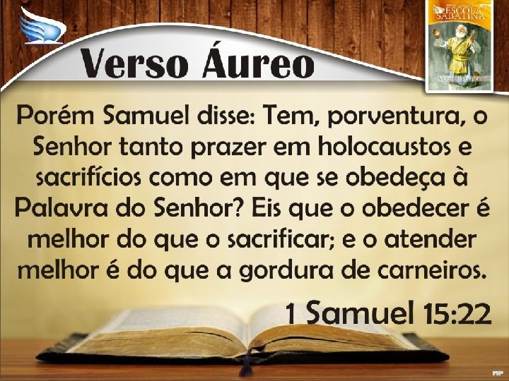 1 Sm 13: 14 — Porém, agora, não subsistirá o teu reino; já tem buscado o Senhor para Si um homem segundo o Seu coração e já lhe tem ordenado o Senhor que seja chefe sobre o Seu povo, porquanto não guardaste o que o Senhor te ordenou. 1 Sm 15: 22 e 23 — 22 Porém Samuel disse: Tem, porventura, o Senhor tanto prazer em holocaustos e sacrifícios como em que se obedeça à palavra do Senhor? Eis que o obedecer é melhor do que o sacrificar; e o atender melhor é do que a gordura de carneiros. 23 Porque a rebelião é como o pecado de feitiçaria, e o porfiar é como iniquidade e idolatria. Porquanto tu rejeitaste a palavra do Senhor, Ele também te rejeitou a ti, para que não sejas rei. At 13: 20 e 22 — 20 E, depois disto, por quase quatrocentos e cinquenta anos, lhes deu juízes, até ao profeta Samuel. [. . . ] 22 E, quando este foi retirado, lhes levantou como rei a Davi, ao qual também deu testemunho e disse: Achei a Davi, filho de Jessé, varão conforme o Meu coração, que executará toda a Minha vontade.