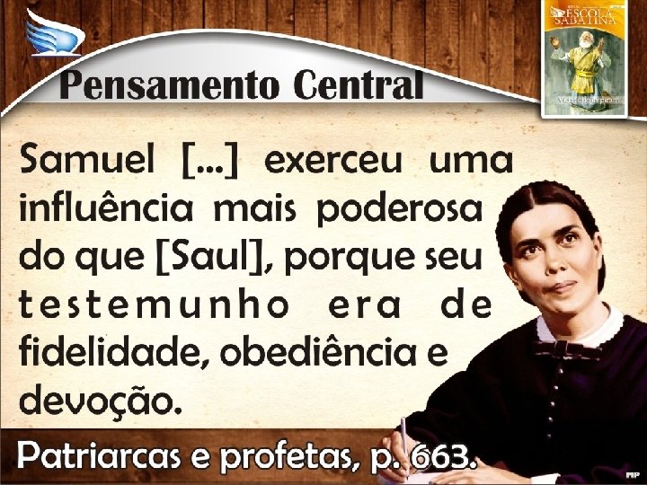 Foi quando a nação era torturada por conflito interno, quando o conselho calmo e inspirado no temor de Deus, dado por Samuel, parecia mais necessário, que Deus deu descanso ao seu idoso servo. Amargas foram as reflexões do povo, enquanto olhavam para o seu tranquilo lugar de descanso, e lembraram-se de sua loucura ao rejeitá-lo como seu governador, pois ele teve uma comunhão tão íntima com o Céu que parecia ligar toda a nação ao trono de Jeová. Foi Samuel que os ensinou a amar e a obedecer a Deus [. . . ]. — Patriarcas e profetas, pp. 663 e 664.