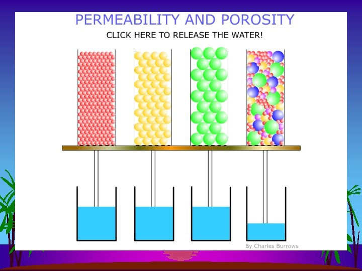 Permeability Ability of water to pass through l Affected by: packing and particle size l Tighter packing and Smaller particles = less permeability l Looser Packing and Larger particles = more permeability PERMEABILITY l PARTICLE SIZE
