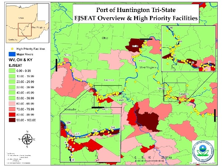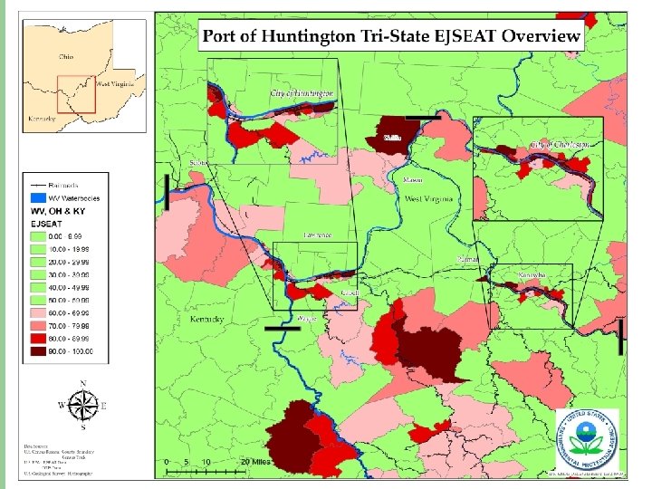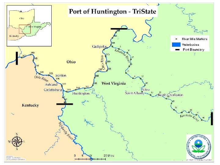 Huntington Tristate Background l l l Largest inland port 77 million tons of cargo annually. 60 % coal and 30 % petroleum/chemical products. No central authority or commission City of Huntington, WV – – “Unhealthiest U. S. City” by CDC in 2008 Nations worst outdoor air quality around schools by USA Today.