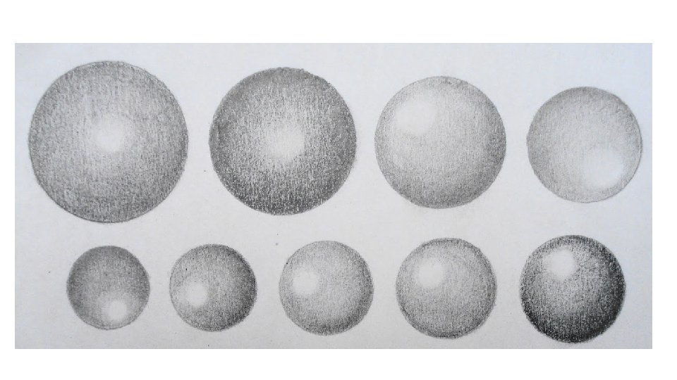 El Brillo (A) es aquella área que está más cerca de la luz. Medio Tono (B) la luz va disminuyendo en intensidad pues ya no cae tan directamente. Sombra Propia (C) la luz no llega. Luz Reflejada (D) Nuestra bola reposa sobre una mesa y dicha mesa refleja un poco de luz sobre la bola. Sombra Arrojada (E) es la silueta de la bola que produce en la mesa.