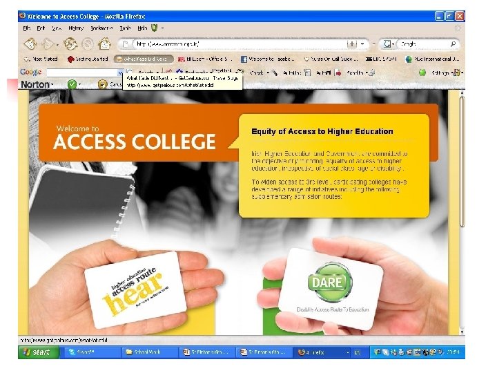 Higher Education Access Route – HEAR n National Agreed Criteria for all students n Online application n 1 st February – closing date 1 st April – supplementary information to CAO www. accesscollege. ie