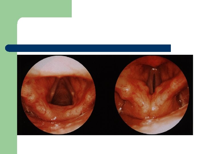Vývoj dětské chraptivosti l 1. 2. 3. 4. Průvodním jevem při dětské chraptivosti je pokašlávání a pochrchlávání. Nález na hlasivkách postupuje takto: Hyperemické (překrvené hlasivky, Hypertrofické, vřetenovité zduření, hlasivkový uzávěr je neúplný a hlas má dyšnou příměs, ventrikulární řasy se začínají vyklenovat Zpěvácké uzlíčky, nejčastěji na hranicích přední a střední třetiny hlasivek Atrofie hlasivek až s podélnou rýhou, při fonaci nedomykavost uzávěru.