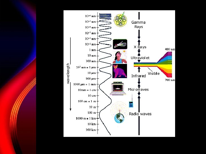 Radiation (energy/transfer) § The only form able to travel through space § Emitted by the sun § Types of EMR Electromagnetic Radiation § § § § Radio waves Microwaves Infrared radiation Visible light spectrum ROYGBIV UV (ultraviolet) X-ray Gamma Ray Cosmic Rays