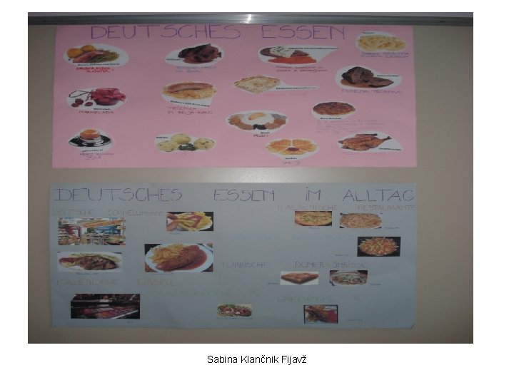 Primeri iz prakse • izštevanka ( Eins, zwei Polizei ), • petje pesmic ( Das Abc Lied, Tierische Reime, O Tannenbaum, Heute lern ich nicht, Ich bin Musikante, … ), • predstavitev učencev ob rožici, predstavitev družine ob plakatu, • gledališka igra ( Das Rotkäppchen, Schneewitchen und die sieben Zwerge ), • izdelava mini knjigice, šolsko glasilo, • skupinsko delo na temo hrana, • ekskurzija v Minimundus. Sabina Klančnik Fijavž