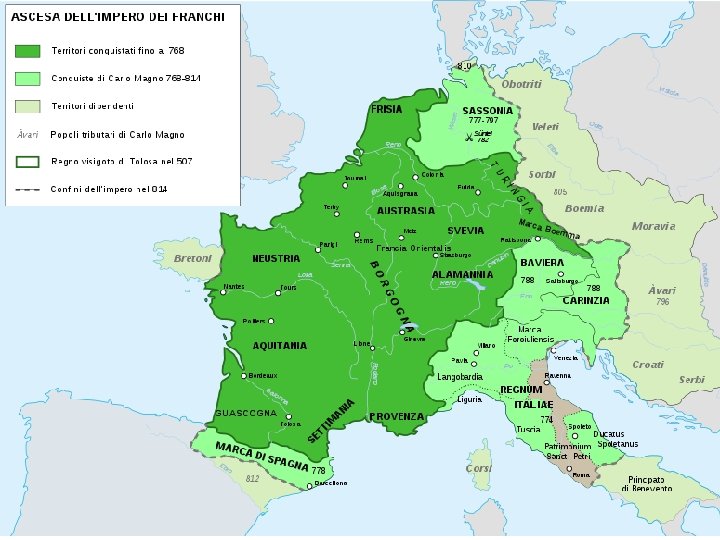 Franačka država • SEOBA FRANAKA • USPON KLODVIGA • VLADAVINA MAJORDOMA • PIPIN MALI • KARLO VELIKI